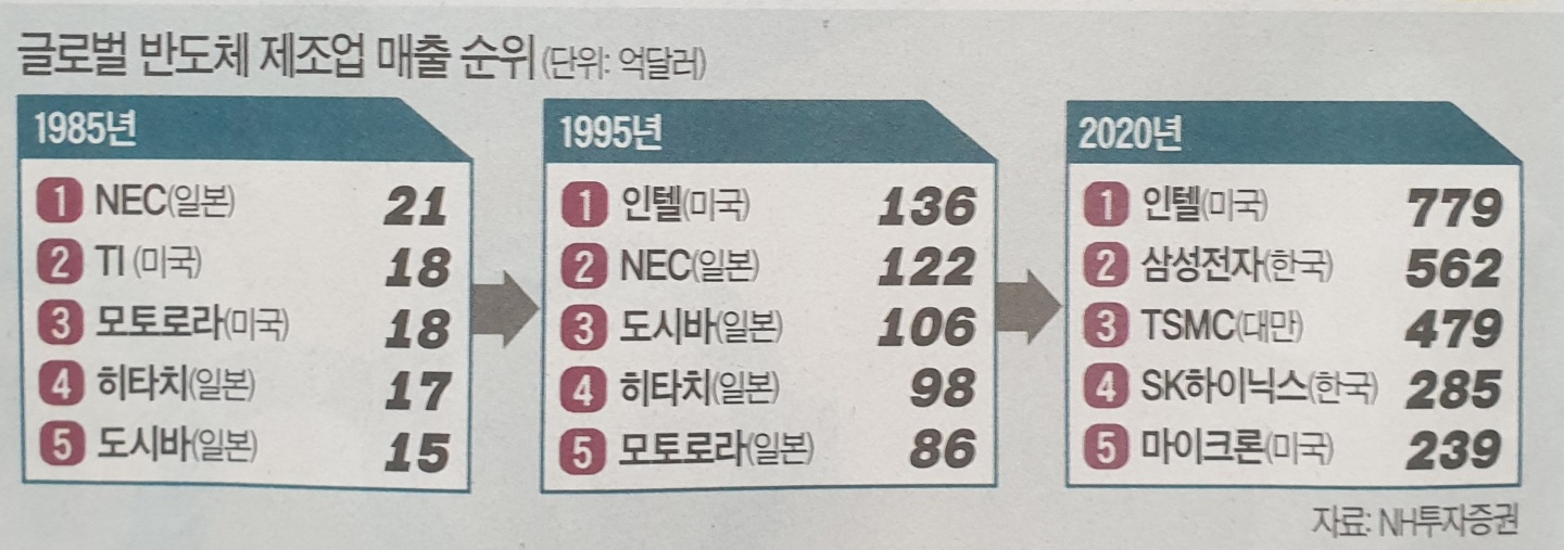 조익재 하이투자증권 전문위원은 “반도체 주도권이 과거 미국에서 일본으로 왔다가 한국과 대만으로 옮겨온 상황인데, 이를 다시 가져가겠다는 게 미국의 큰 그림”이라며 “미국 반도체업체가 정부 지원을 받아 주도권을 가져갈 수도 있는 흐름”이라고 지적했다.