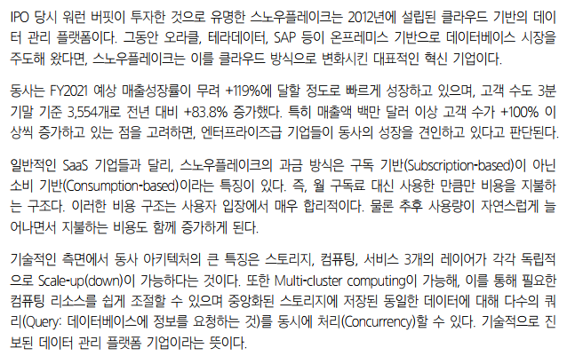 # 투자포인트1. 스노우플레이크는 가장 진화된 형태의 데이터 플랫폼