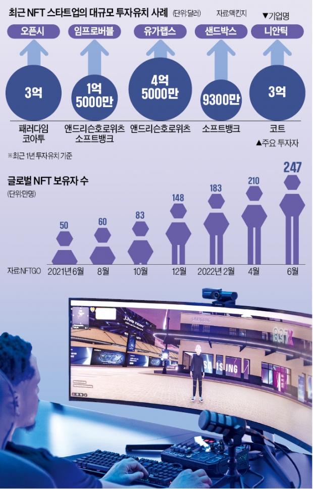 세계적으로 NFT 투자자는 빠르게 증가하고 있다. 지난해 6월 글로벌 NFT 보유자는 50만 명에 그쳤지만 매달 가파르게 늘어 이달에는 250만 명에 육박하고 있다.