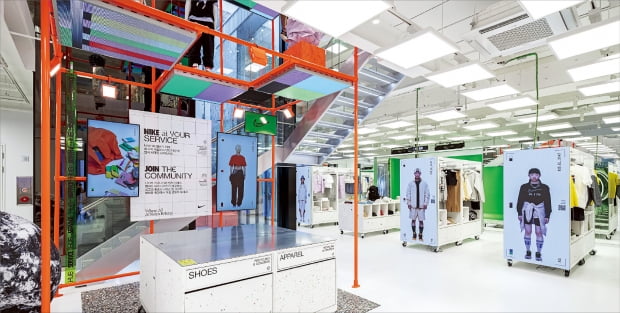 나이키 스타일 매장 안엔 자신의 취향대로 옷과 신발을 디자인하는 ‘나이키 바이유’, 스니커즈 문화 공간인 ‘SNKRS라운지’와 갤러리 등도 자리 잡았다.