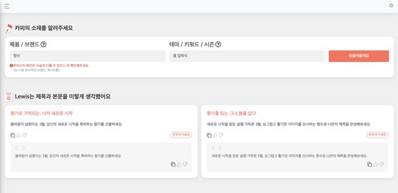 루이스는 이달 초부터 2주간 현대백화점 내 커뮤니케이션팀 등 관련 부서 120여 명의 테스트를 거쳤다. 루이스와 대화하듯 디자인된 웹사이트에 행사 브랜드와 주제, 계절 등 핵심어를 입력하면 10초 안에 제목과 본문으로 조합된 문구가 추출된다.
