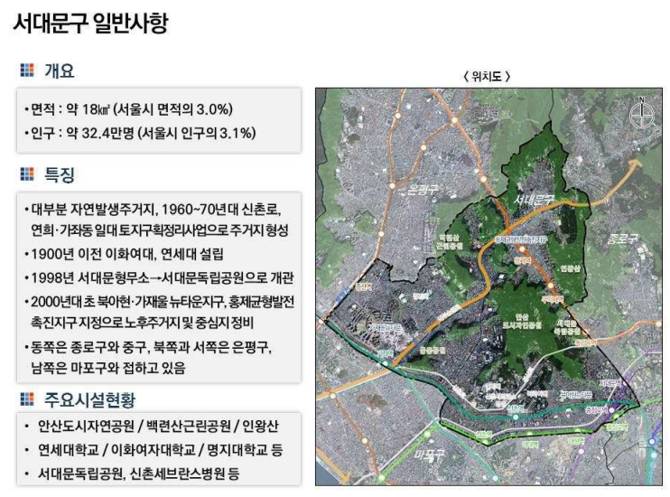 [특징] 대부분 자연발생 주거지로 2000년대 초 북아현, 가재울 뉴타운지구, 홍제균형발전 촉진지구 지정으로 노후 주거지 및 중심지가 정비되었음