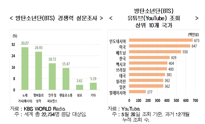 현대경제연구원에서 발표한 조사 자료를 바탕으로 BTS 성공사례를 바탕으로 공부하겠습니다.