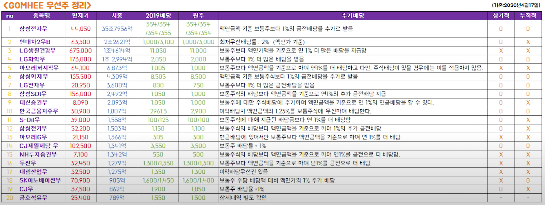 - 혜택 확인은 DART에 들어가서 기업이름 검색, 우선주에 들어가면 상세하게 설명해줌
