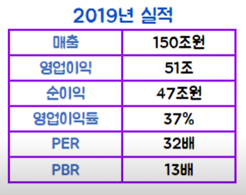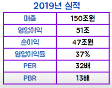 3) 높은 마진율: 매출이 150조인데 이익이 47조라는 점!