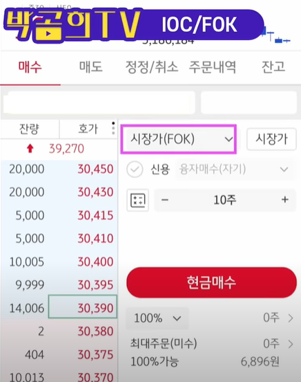 FOK (Fill or Kill) : 주문한 수량 전체가 즉시 주문 체결되 지 않으면 주문량 전체 취소